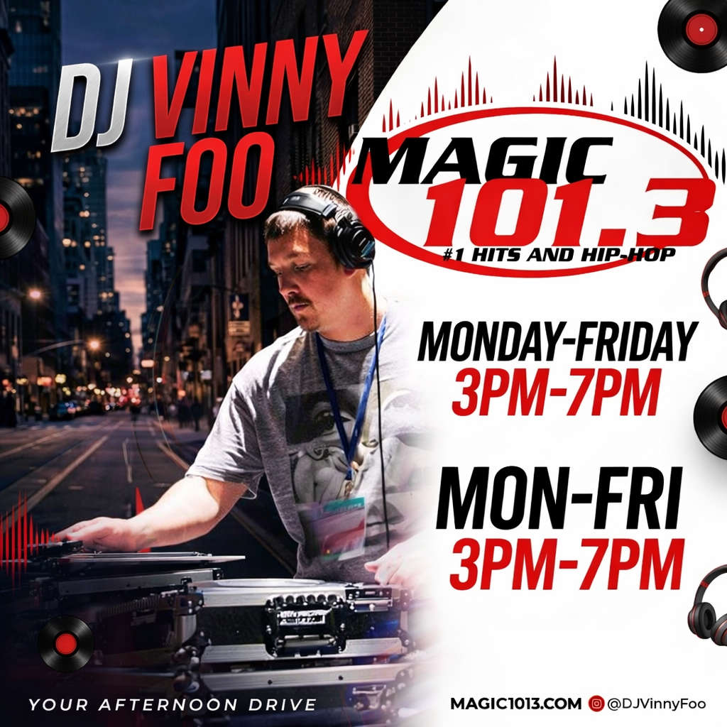 When he’s not on-air spinning hits and giving away prizes, Vinny Foo stays active in the community, hosting local events, supporting school programs, and showing love to neighborhood causes that make a real difference. Whether it’s a charity drive, a city festival, or a school pep rally, you can count on Vinny to bring the music, the mic, and the good vibes.